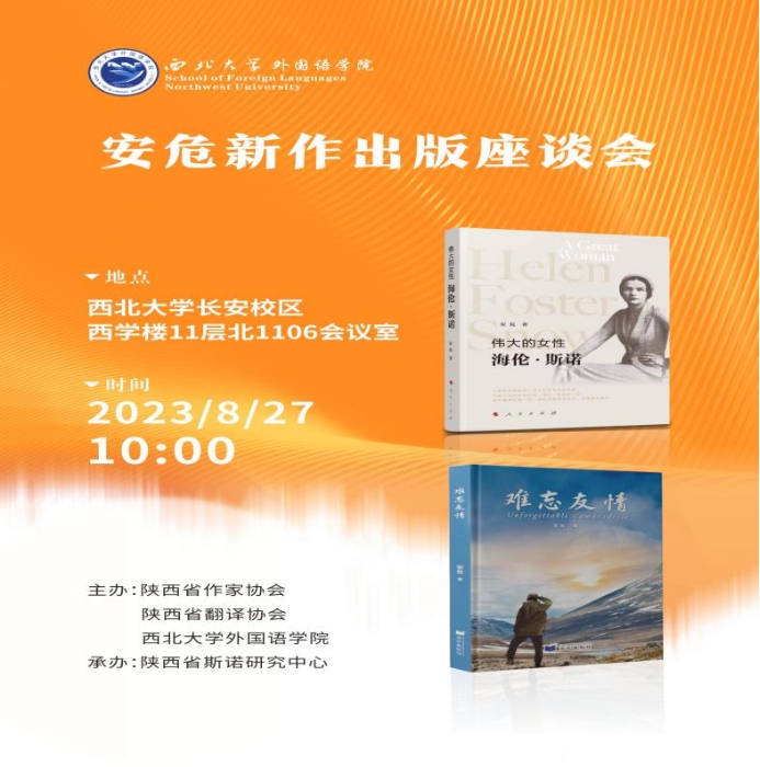 On the morning of August 27, 2023, a symposium was held at Northwest University to celebrate the publication of two new works by Mr. An Weixian, a renowned translator, writer, and founder of the Shaanxi Snow Research Center. The two new works are A Great Woman - Helen Foster Snow and Unforgettable Camaraderie.