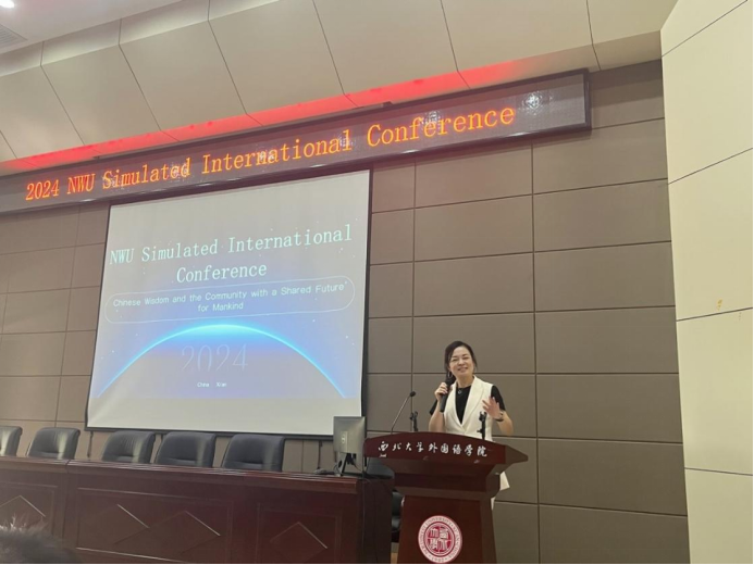 On the morning of June 29, 2024, a simulation international conference for undergraduates and graduate students was held at the Second Foreign Language Classroom on the Chang’an campus of Northwest University. Nearly 200 students from twenty departments engaged in extensive discussions on the topic of “Chinese Wisdom and the Construction of a Community with a Shared Future for Mankind” through keynote speeches, thirteen sub-forums, and poster presentations. The conference was carefully organized by Professor Gao Shuling and Gao Minna from the School of Foreign Languages, with the Vice Dean of Teaching, Li Ming, attending the opening ceremony and delivering a speech.