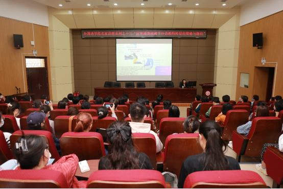 Dean Cao Ruonan first warmly welcomed and sincerely thanked Professor Zhang Weilei for taking the time to give an academic lecture to our faculty and students. She briefly introduced Professor Zhang Weilei’s personal background and academic achievements. Subsequently, Professor Zhang Weilei gave an academic lecture titled Strategies and Paths for the Transformation of Foreign Language Teachers from the Perspective of Country and Region Studies. The lecture focused on five aspects: country and region studies, its basic research, advantages of foreign languages, interdisciplinary theories and methods, and case analysis. Professor Zhang elaborated on the basic concepts and characteristics of country and region studies, as well as the interdisciplinary implementation paths and methods of country and region studies from different perspectives such as linguistics and literature. He advocated for foreign language teachers to broaden their academic horizons and development paths by integrating different research directions within the discipline or across multiple disciplines.