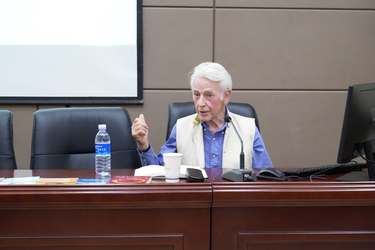 The first lecture was delivered by Professor Kenneth King, Chair of Comparative and International Education at the University of Edinburgh, UK. Professor King. Starting with comparing the timelines of when China and the UK began to focus on regional studies, Professor King pointed out that the UK’s regional studies are closely tied to its colonial history, while China’s regional studies have developed alongside the growing power of AI and the “Going Global” strategy. Professor King then systematically elaborated on the development of Africa studies, development studies, and international education in the UK and China, touching on aspects such as “Going Global” and soft power, the development of Confucius Institutes and Luban Workshops in Africa, and the growth of international and comparative education. He mentioned that the establishment of Confucius Institutes and Luban Workshops has provided opportunities for people around the world to learn Chinese and vocational skills, and has offered China a platform to showcase its “soft power” globally. Additionally, Professor King shared his personal experience in teaching English in Ethiopia and his research on Africa, presenting relevant photos and encouraging students to combine their translation skills with regional studies to contribute to the field. Finally, he showcased books and journals on Africa studies and regional studies published since 2005, offering valuable resources for both faculty and students’ research.