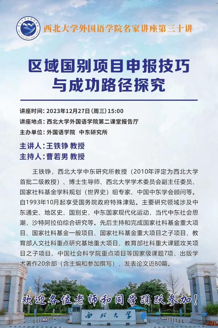 Location: Lecture Hall 2, School of Foreign Languages, Northwest University