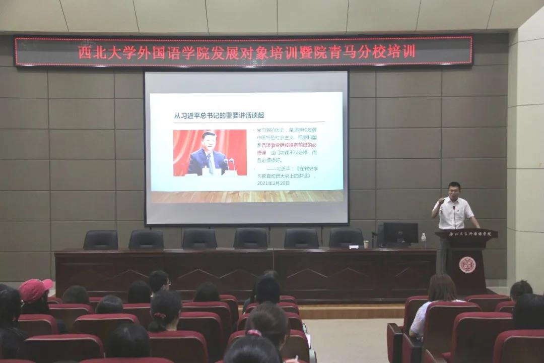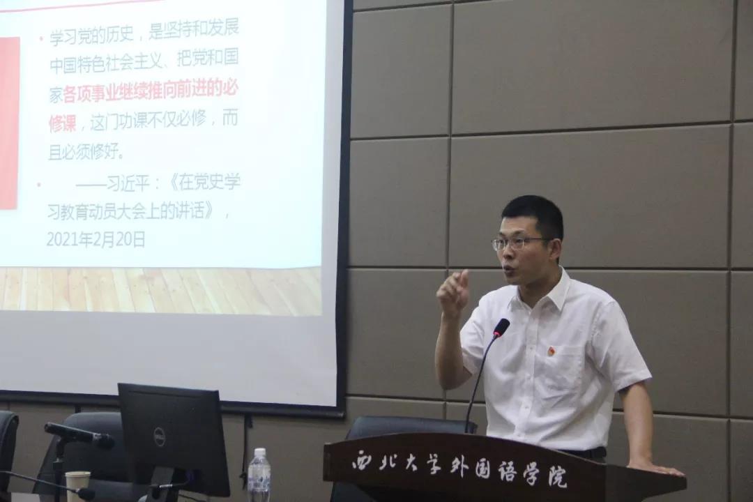 根据学院《2021年上半年发展对象培训安排》,结合学院党史学习教育安排,6月8日晚,学院党委邀请到陕西省中共党史人物研究会理事、中共陕西省委党史研究室宣讲团成员、陕西高等学校第四届青年教师教学竞赛文科组一等奖、陕西省第三届高校教师微课教学比赛一等奖、陕西高校思政课教师“大练兵”思政课程“教学标兵”齐钊副教授面向学院发展对象和学院青马分校全体成员近90名师生开展了党史学习教育专题讲座暨学院发展对象和青马分校培训。本次培训专题讲座由赵明星老师主持。