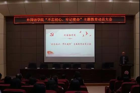 本次动员大会的召开是学院“不忘初心、牢记使命”主题教育安排的重要举措。外国语党委将会紧紧围绕抓好学习教育、扎实调查研究、认真检视问题、从严整改落实四方面认真开展“不忘初心、牢记使命”主题教育,让全体党员理论学习有收获、思想政治受洗礼,推动学院的进一步发展。