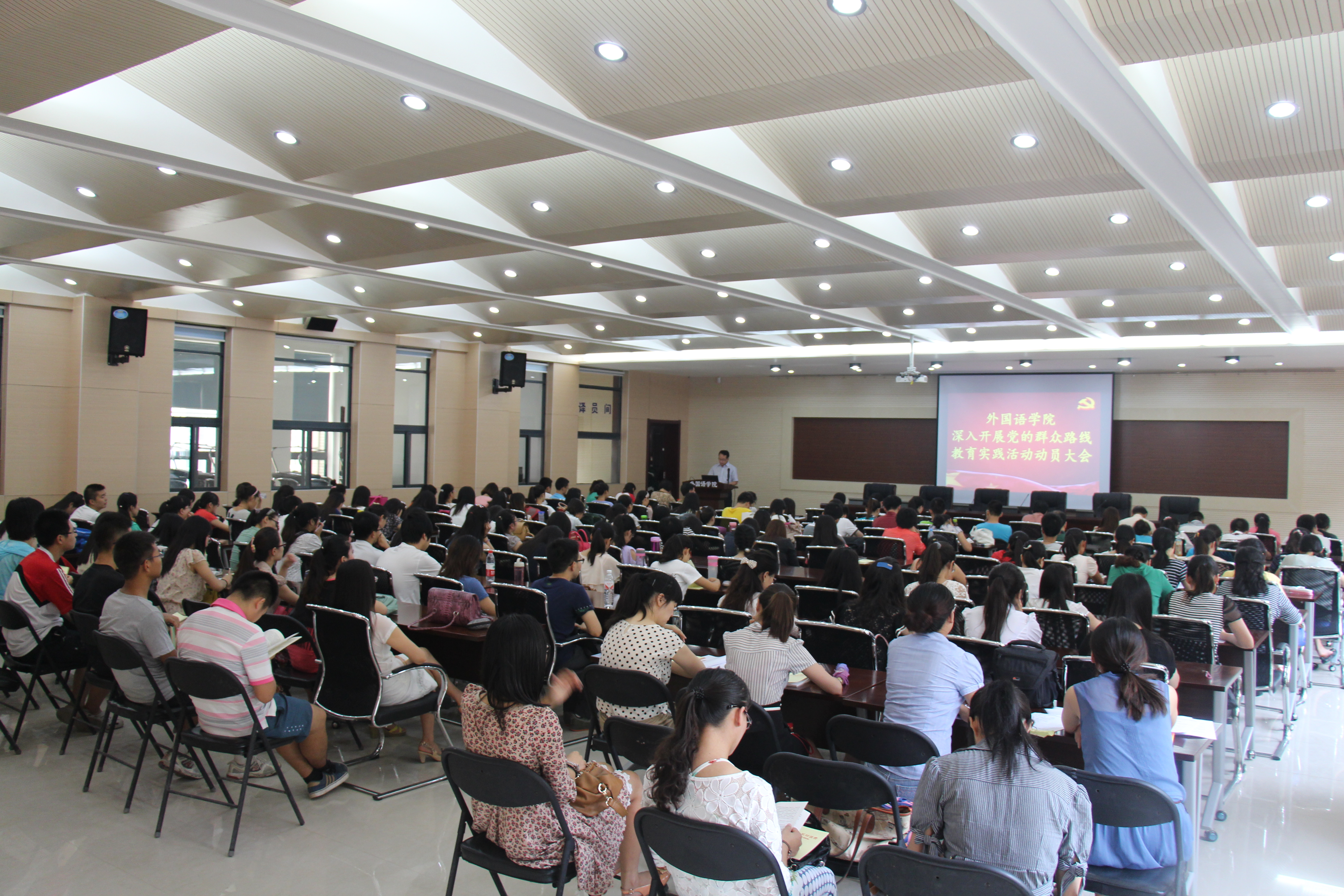 ,学院党委组织学院班子成员进行集中学习并认真研究讨论《外国语学院深入开展党的群众路线教育实践活动实施方案》。18日下午,学院党委召开全院党员大会,全面动员和认真部署党的群众路线教育实践活动,学院领导班子成员、党委委员、各支部书记、师生党员约150人参加会议。
