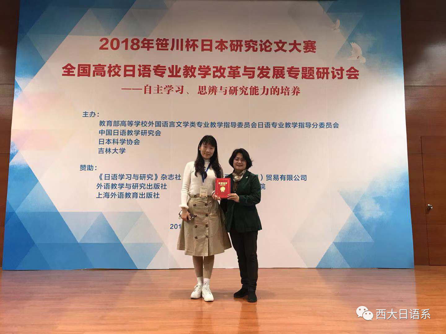 2018年10月26日,在吉林大学举行的全国首届笹川杯大学生日本研究论文大赛中,日语系2015级许凯欣同学获得文化组三等奖。