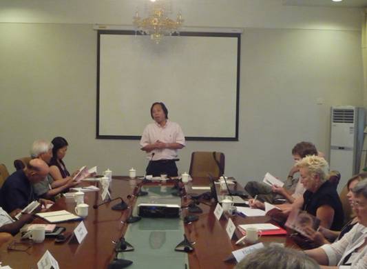 7月9日上午,我院副院长胡宗锋教授应邀在北校区国际交流学院一层会议室,为美国富布莱特——海斯中国文化与历史考察团(Fullbright-Hays seminars abroad China: History and Culture in China)作了题为“中国传统文化”的英文讲座。该团的成员是由美中友好关系委员会(National Committee On United States-China Relations )选派的对中国文化和历史感兴趣的专家和学者组成,将围绕“examines the country's fascinating past, complex present, and future challenges.”在中国进行为期近一个月的考察。