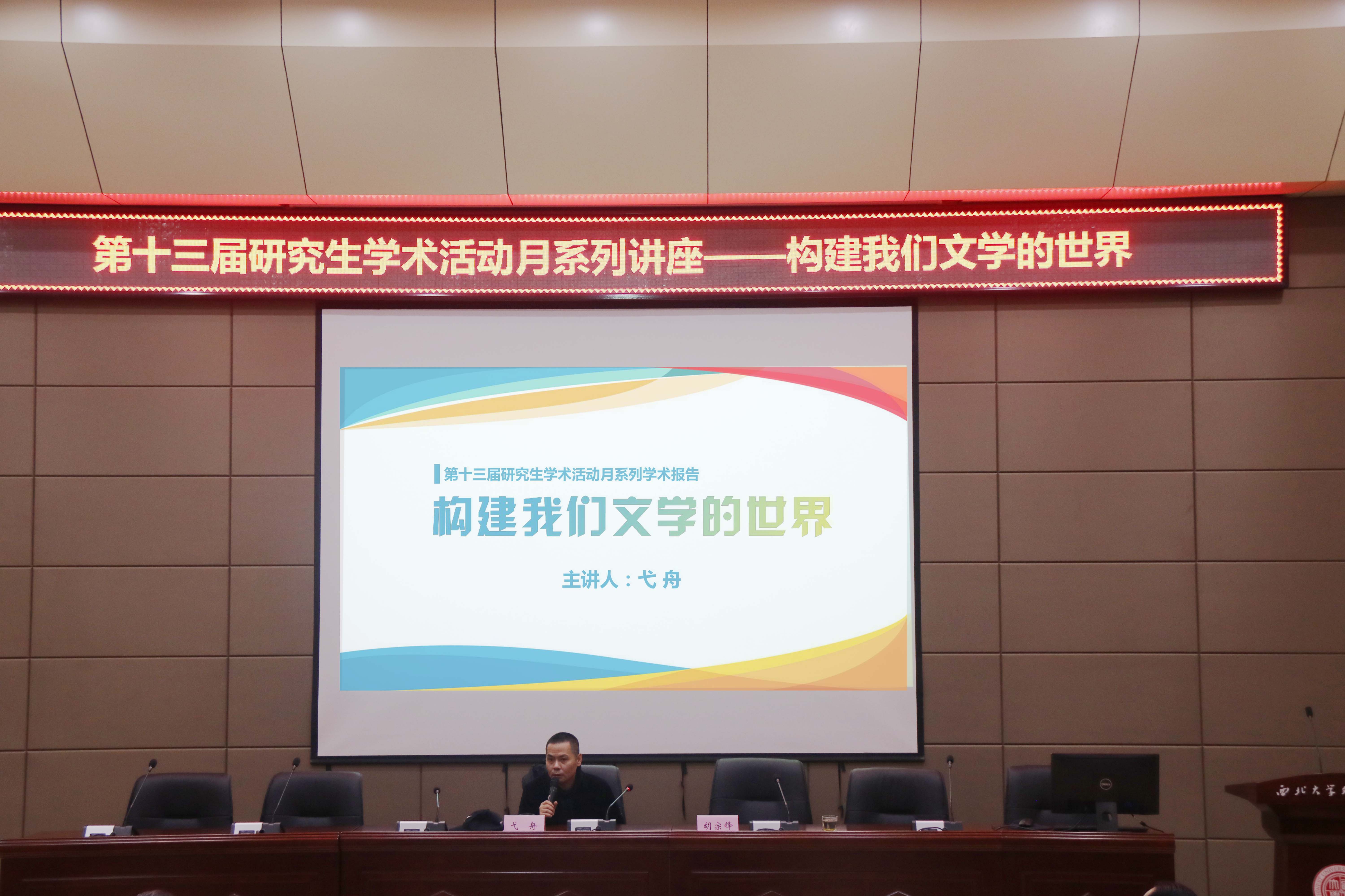 在提问环节,弋舟就“中国了解世界与世界了解中国”、“中国文学与西方文论”、“中国文学外译中的归化和异化”等问题作了精彩的回答。最后,胡宗锋对本次报告作了总结发言,并代表学院感谢弋舟的来访。讲座在热烈的掌声中落下帷幕。
