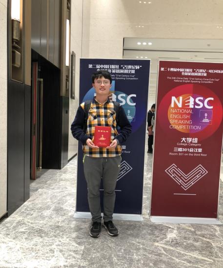 3月24日下午,“21世纪杯”英语演讲比赛在杭州国际博览中心落下帷幕,我院翻译硕士(MTI)高宇雷荣获青年组全国一等奖。
