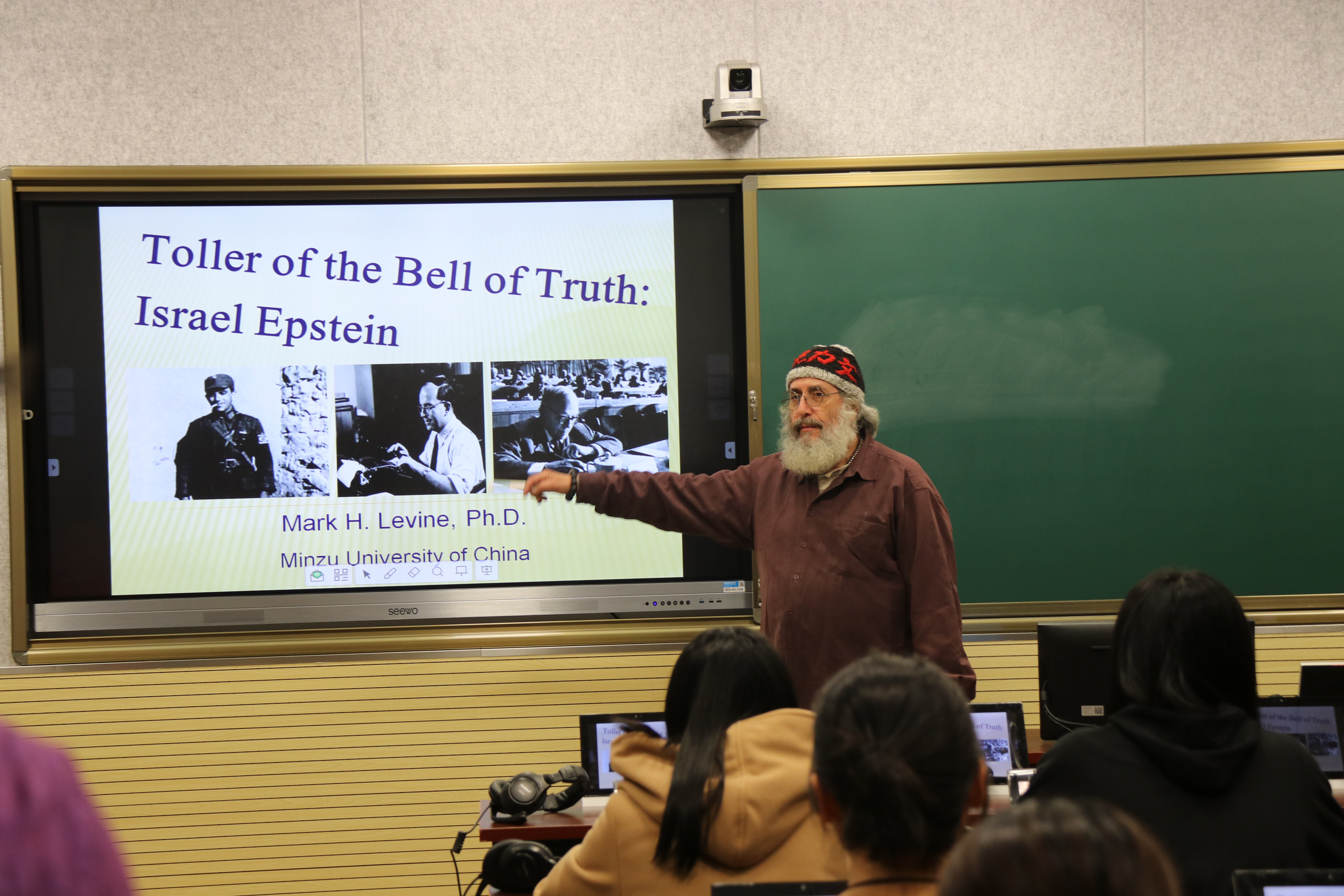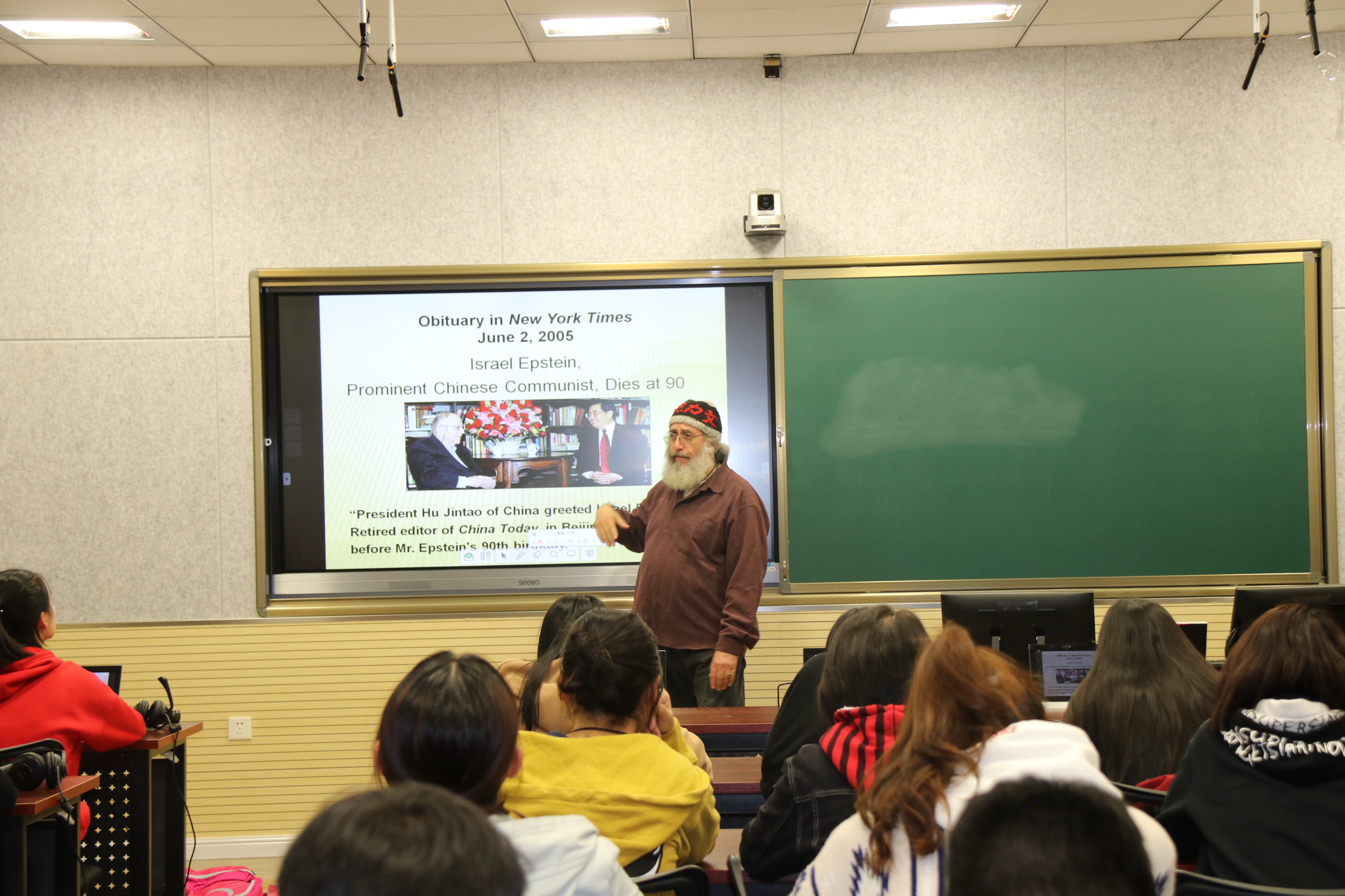 10月19日下午,美国社会学博士、中国民族大学外专教师马克力文(Mark Levin)应外国语学院邀请,在我院录播室为我师生作了题为“伊斯雷尔·爱泼斯坦:真理之钟的鸣钟人”的讲座,该讲座由外国语学院袁西玲副教授主持。