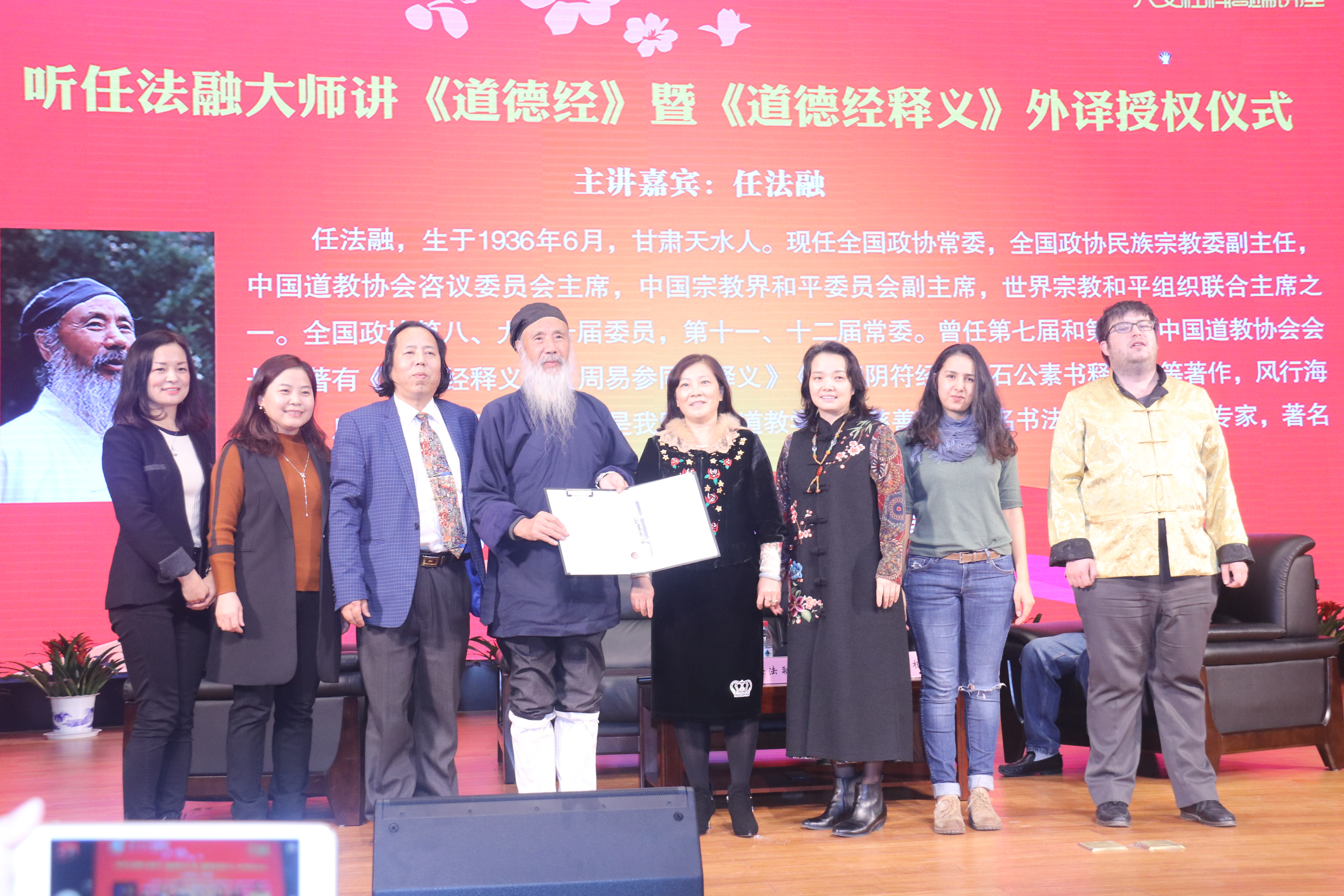 授权仪式之后,任法融道长为师生讲解了《道德经》。他说:道法自然,道德是放之四海皆准的文化理念,是一切文化的根基,建议当代大学生注重自我品德修养,做全面发展的时代新青年。