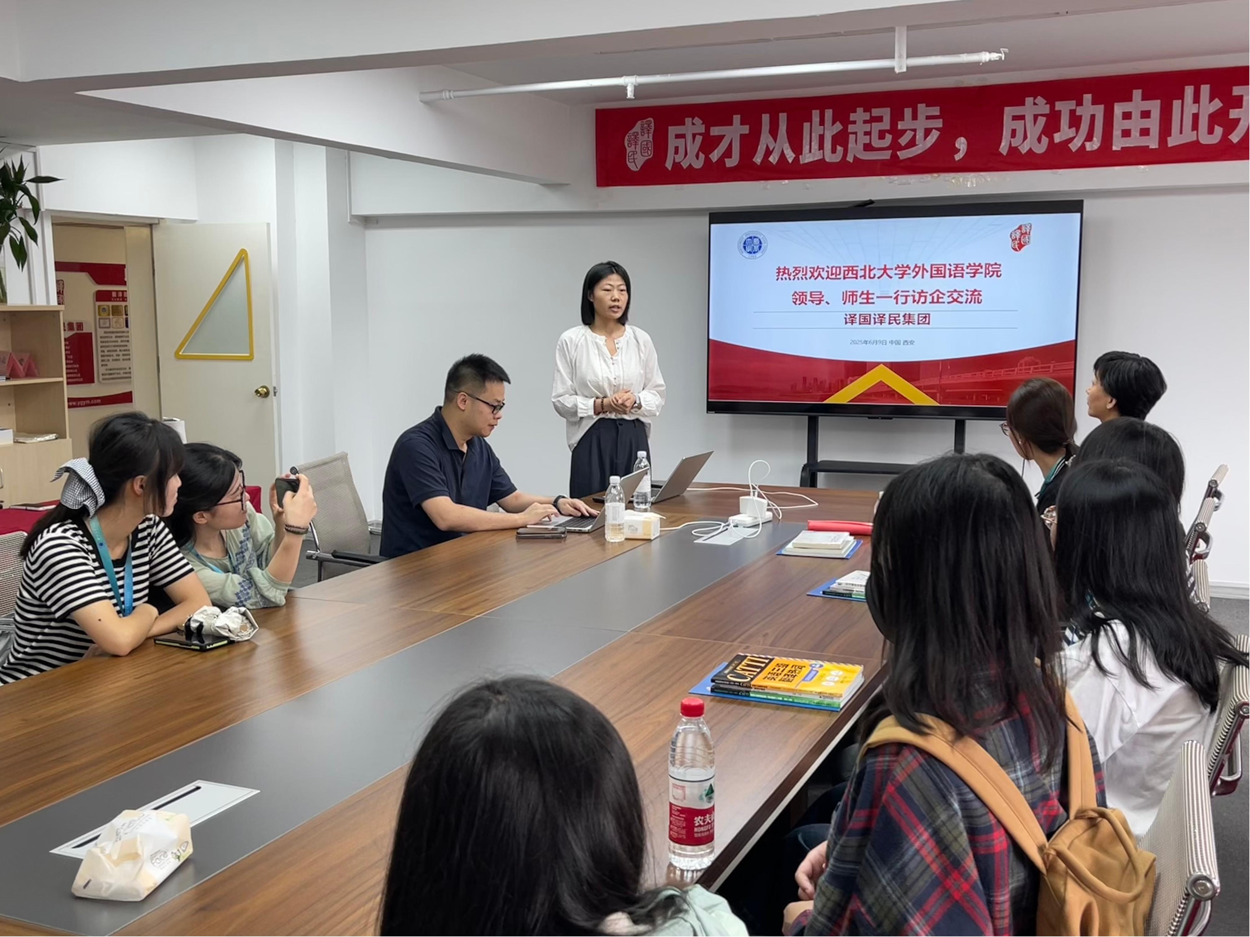 师生抵达译国译民集团西安公司,受到公司经理吴强的热情接待。公司工作人员分别就语言服务行业发展现状、图书审校流程和翻译技术应用与学生进行了交流,现场互动热烈。
