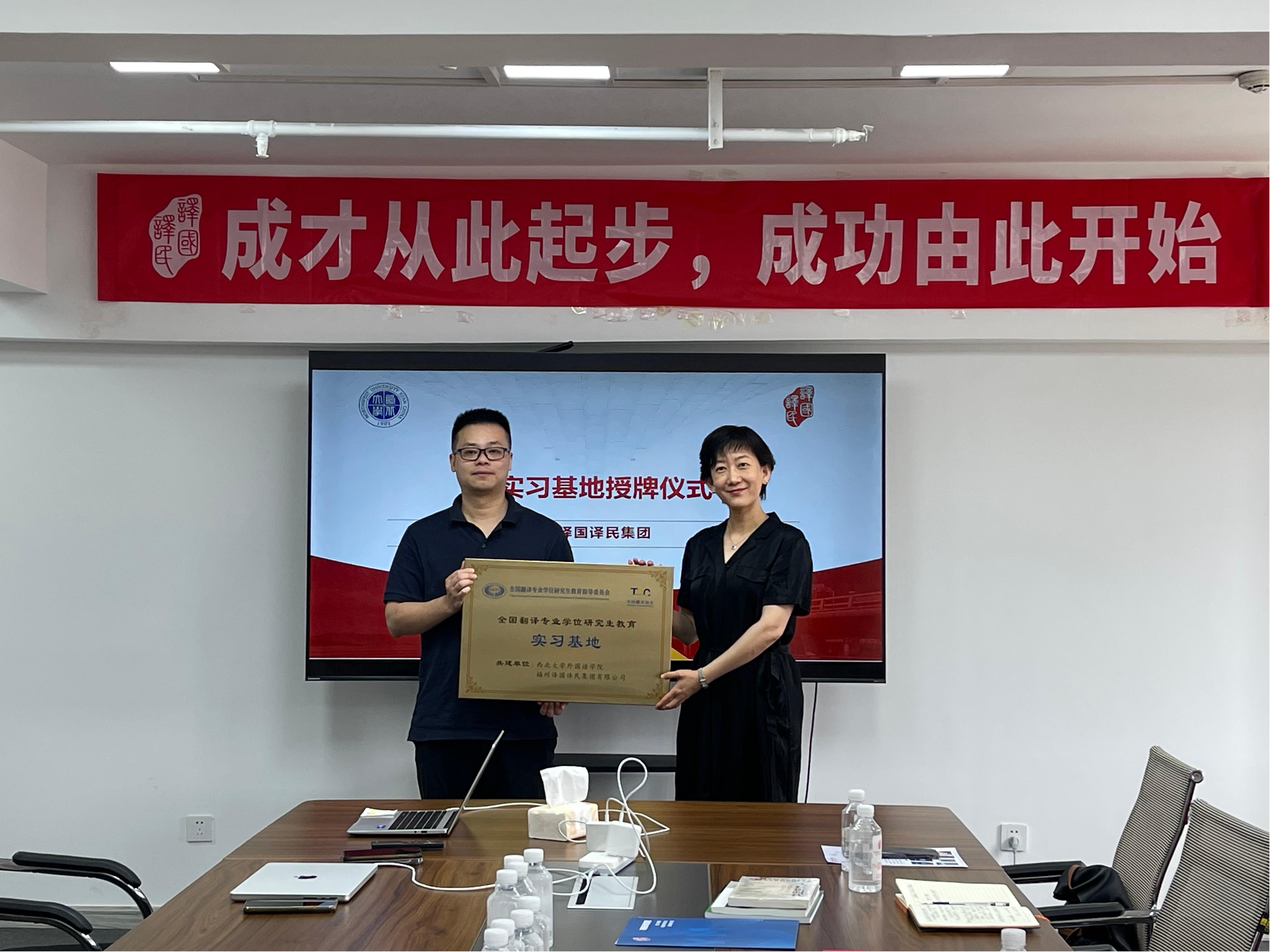 图19:院长曹若男代表学院为译国译民实习基地授牌