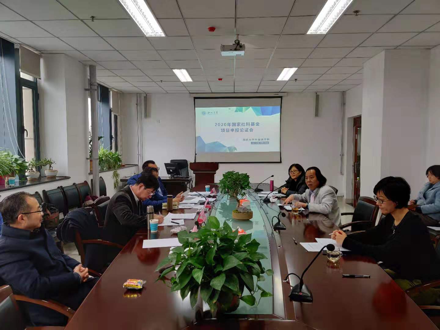 1月10日上午,我院在510会议室召开2020年国家社科基金项目申报论证会。长安大学徐玉臣教授、西安交通大学霍士富教授、西北大学王新刚教授以及韩志斌教授莅临指导,社科处处长马朝琦、科长邵平应邀出席,科研副院长任海棠、教学副院长曹若男等数十位教师参会,会议由院长胡宗锋主持。