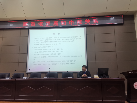5月18日下午,应我院邀请北京枫华艾蒂克集团董事长,中国改革开放论坛理事,兰州大学兼职教授魏新民教授做客我校,为我院师生做题为“再看俄罗斯和中俄关系”的主题讲座。我院相关专业教师及2019、2020级全体硕士研究生参会,会议由外国语学院院长胡宗锋主持。