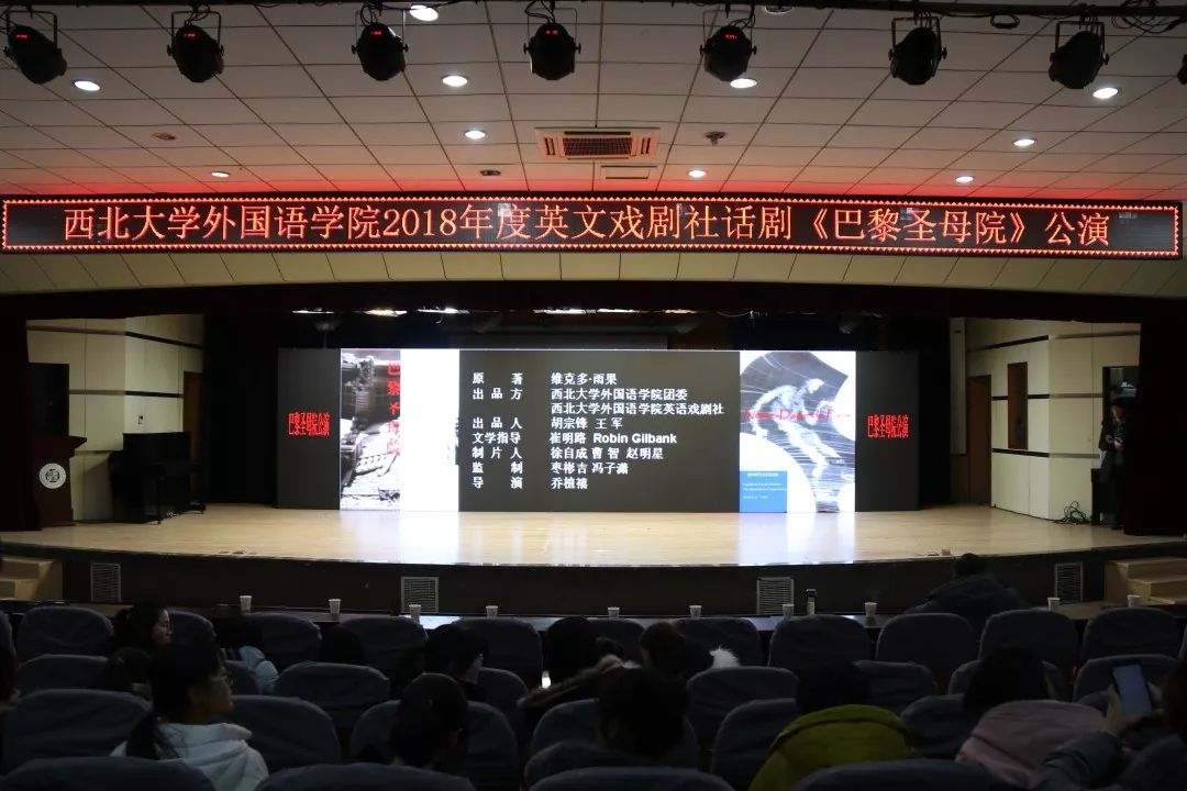晚七点整,在悠扬的歌曲《The Age of the Cathedrals》中,迎着领导师生们期待的目光,舞台的帷幕缓缓拉开,1482年巴黎的故事在长安报告厅上演。