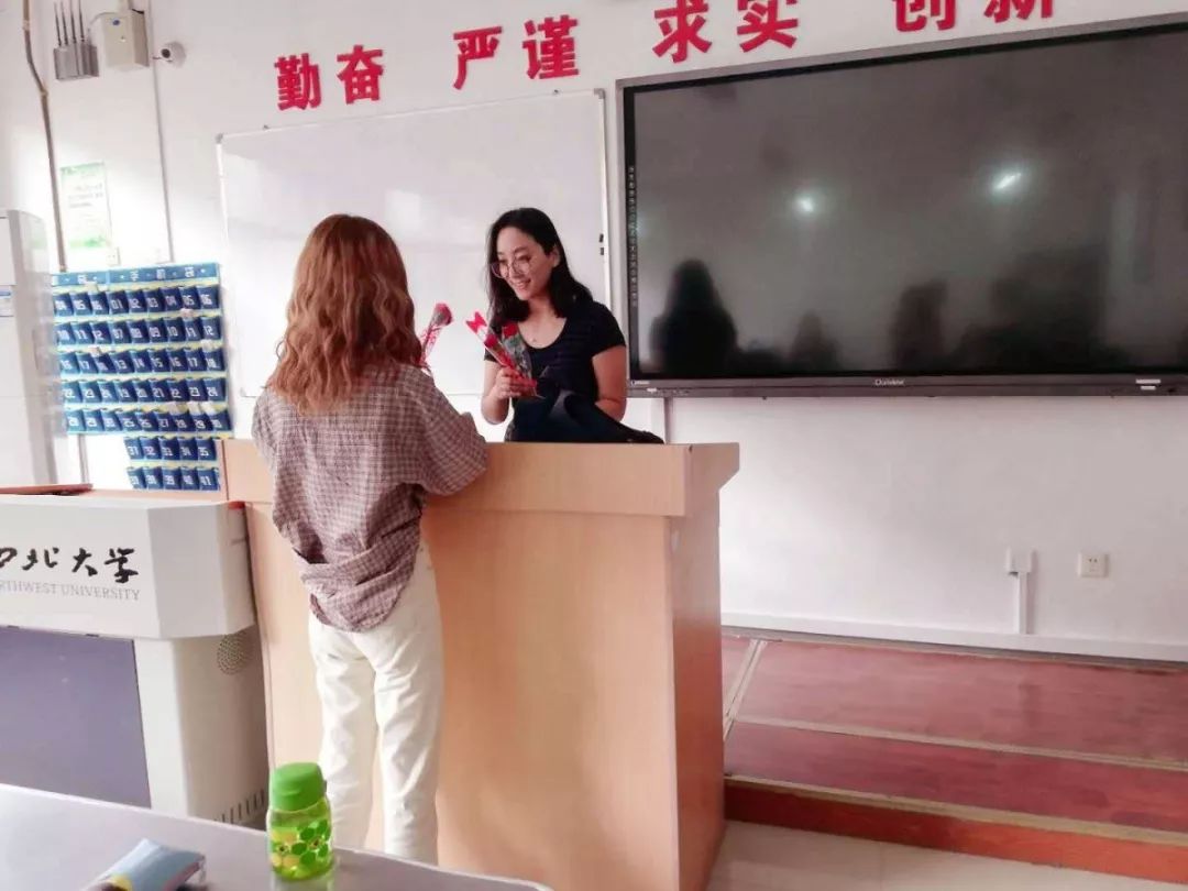 一日为师,终身为师。在校园里,我们是学生,走出校园,我们依旧是学生。外国语学院的学生会的同学代表所有学生在第34个教师节之际为今天所有上课的老师献上了红色的康乃馨。师恩难忘,就让那些话都藏在这小小的花儿里,伴随着馨香涌入老师心中。