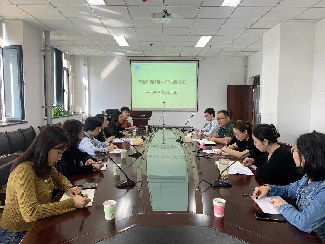 2021年9月29日下午,陕西师范大学外国语学院学工教师团队莅临我院展开座谈调研,两院就学生工作相关问题进行深入交流探讨。