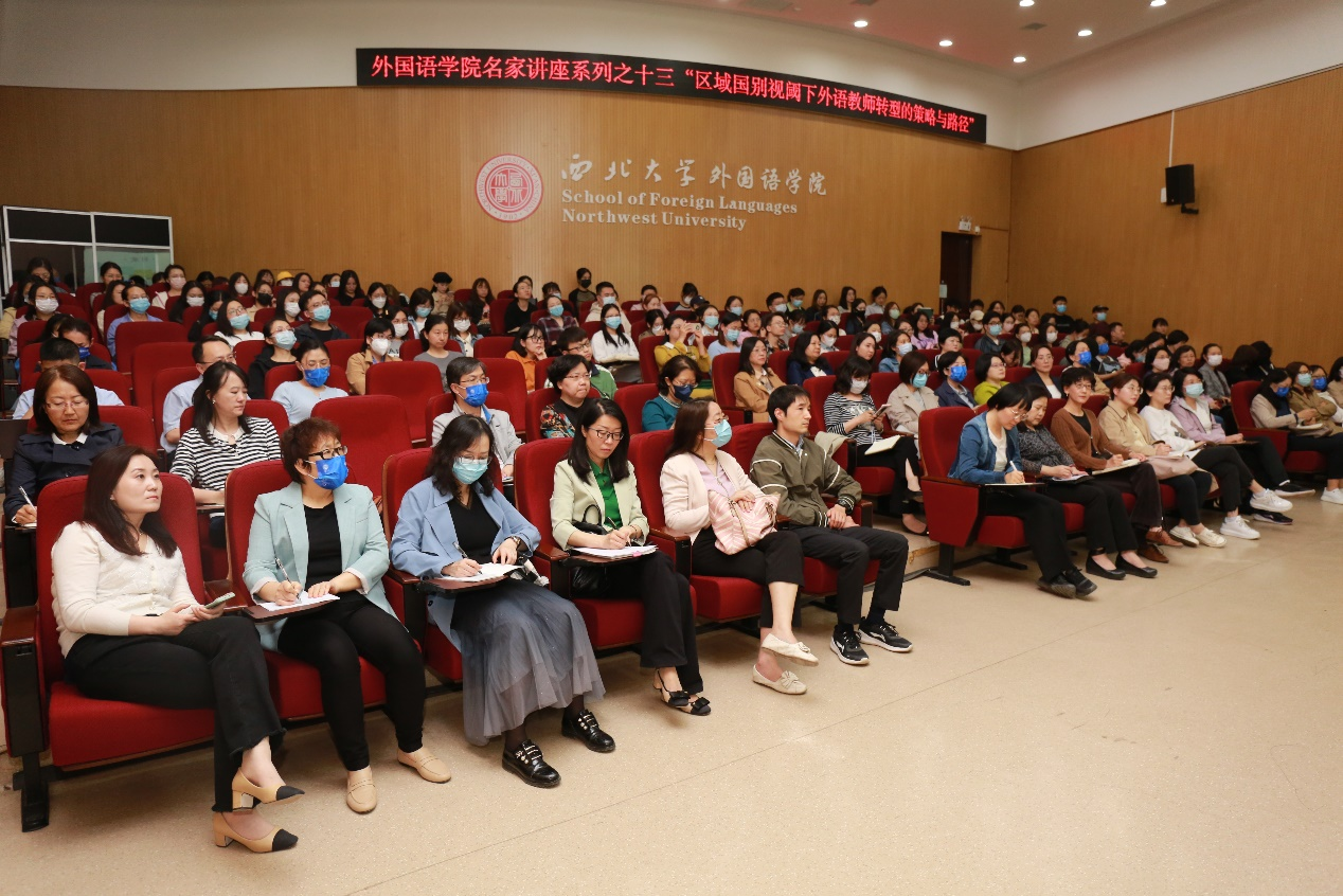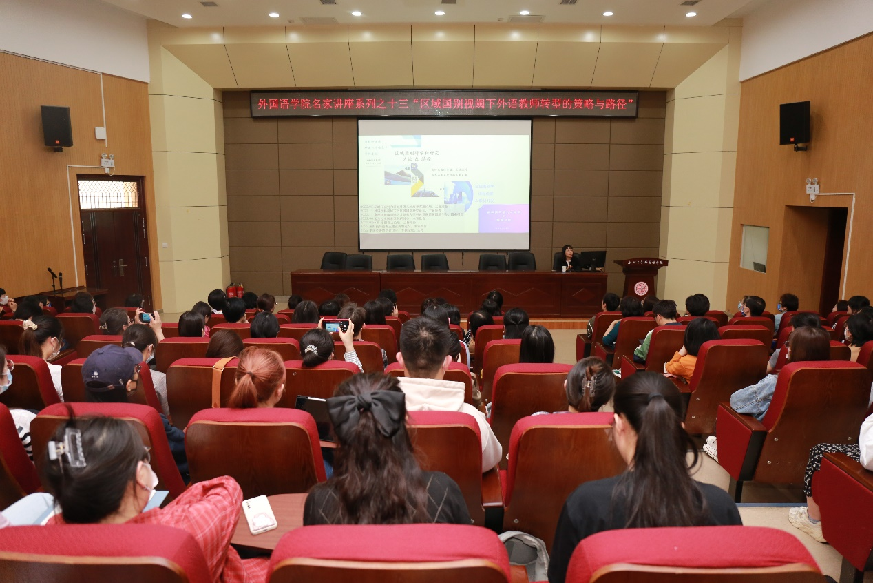 曹若男院长首先对张蔚磊教授拨冗为我院师生做学术讲座表示热烈的欢迎和衷心的感谢,并对张蔚磊教授的个人情况和学术成果进行了简要介绍。随后,张蔚磊教授做了题为“区域国别视阈下外语教师转型的策略与路径”的学术讲座,重点从区域国别学、区域国别研究、外语优势、跨学科的理论与方法及案例分析等5个方面阐释了区域国别学和区域国别研究的基本概念特征及语言学、文学等不同视角下区域国别研究的跨学科实施路径和方法,并倡导外语教师通过学科内部不同研究方向之间或多学科之间的交叉融合开拓学术视野和发展路径。