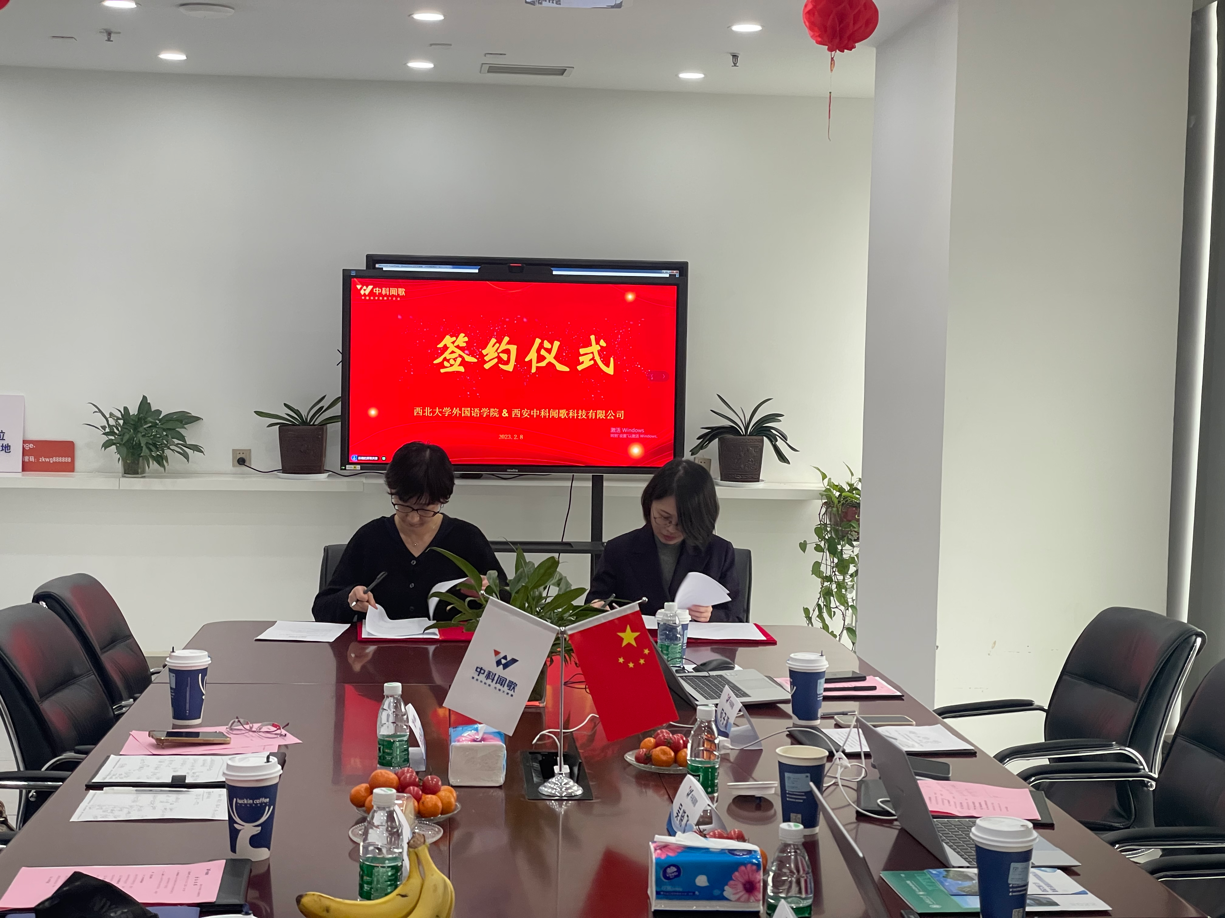 近日,我院院长曹若男与MTI教育中心负责人一行参观访问西安中科闻歌科技有限公司,签订院企合作协议,共建“西北大学研究生示范性实践基地”。