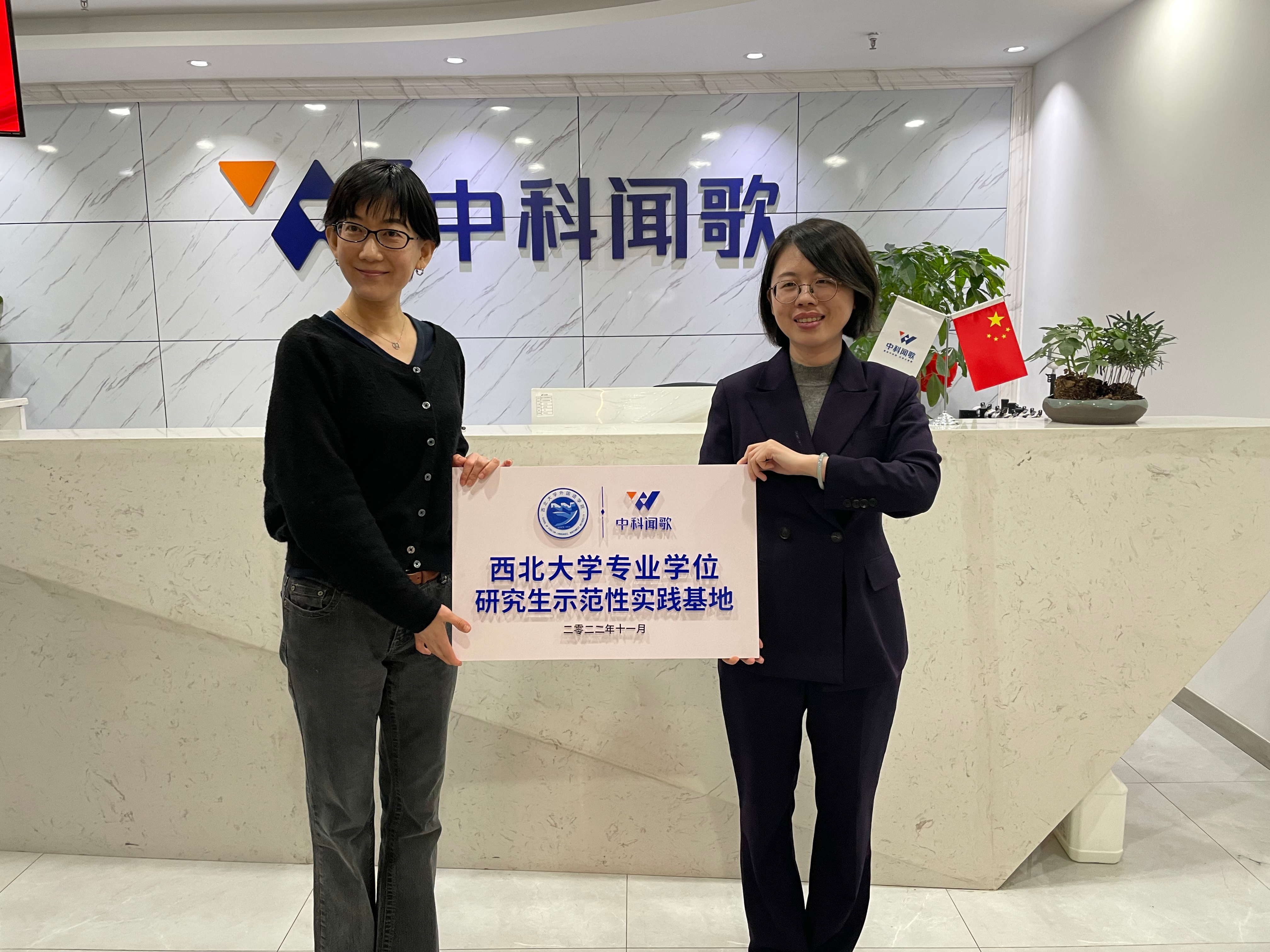 曹若男院长授予西安中科闻歌“西北大学专业学位研究生示范性实践基地”