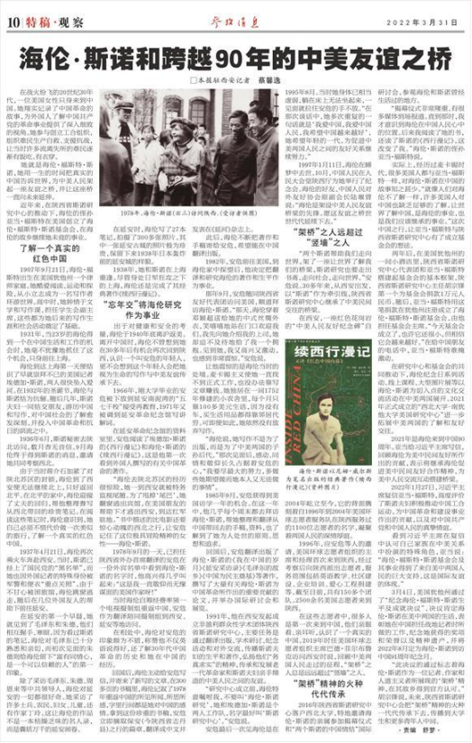 【原标题】海伦·斯诺和跨越90年的中美友谊之桥