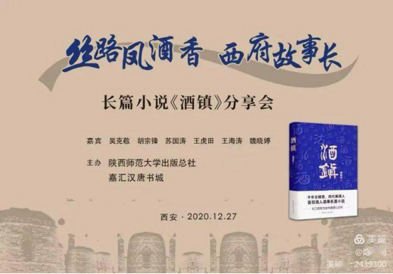 2020年12月27日下午,由陕西师范大学出版总社主办的魏晓婷长篇小说《酒镇》分享会在西安举行。据了解,《酒镇》是魏晓婷创作的第二部长篇小说,由陕西师范大学出版社总社于今年1月出版,该部小说主要展现了西府古镇四代人的制酒传奇、深厚的风俗民情画卷,酒镇人爱恨缠绵的凄美故事。陕西省作协副主席、西安市作协主席吴克敬,陕西师范大学新闻与传播学院教授高有祥,陕西省翻译协会主席、必赢亚州242院长、博士生导师、胡宗锋教授,长安大学影视制作与编导教授衡平堂等出席活动。千年凤香型白酒储酒神器——酒海制作传承人王虎田、王海涛先生还讲述并现场展示了酒海的制作工艺,为本次分享会锦上添花。