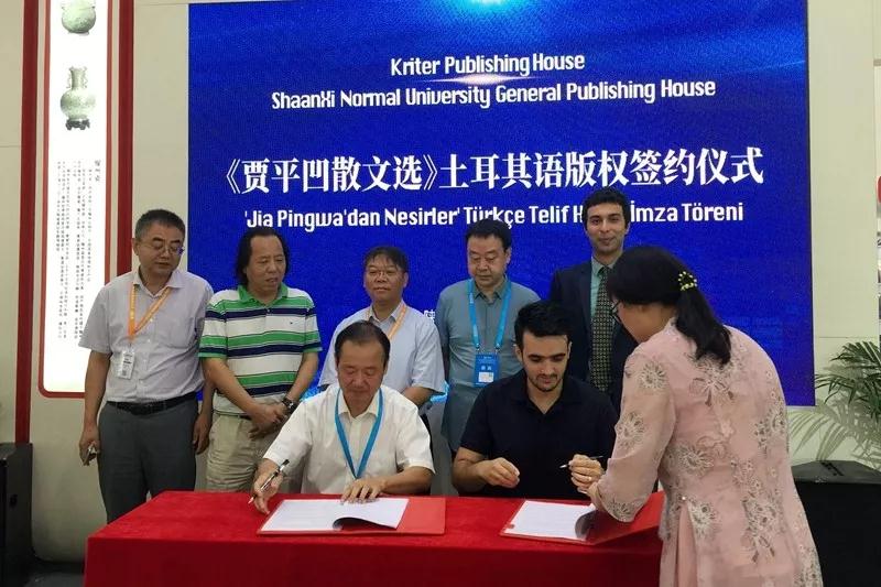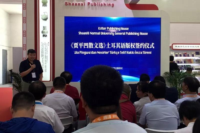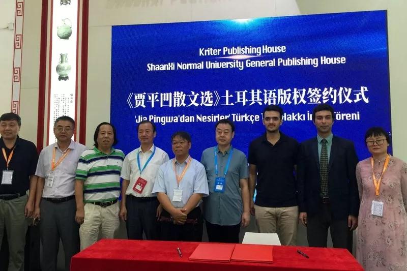 8月21日上午,第26届北京国际图书博览会开展伊始,总社与土耳其Kriter出版社在展会现场举行《贾平凹散文选(汉英对照版)》土耳其语版权签约仪式。陕西省委宣传部厅级领导沙庆超,陕西省委宣传部出版处处长高彦平,陕西省委宣传部版权管理处调研员王新民,陕西省翻译协会会长、西北大学外语学院院长胡宗锋,土耳其Kriter出版社代表、北京世园会土耳其馆馆长Muhammet,陕西省翻译协会海外理事、必赢亚州242“中土(土耳其)文化交流中心”主任、《贾平凹散文选》土耳其语翻译者艾哈迈德·艾克雷姆·德米尔卡勒,总社副社长屈瑞新等出席了签约仪式。总社大众文化出版中心主任郭永新及相关编辑参加了活动。活动由郭永新主持。