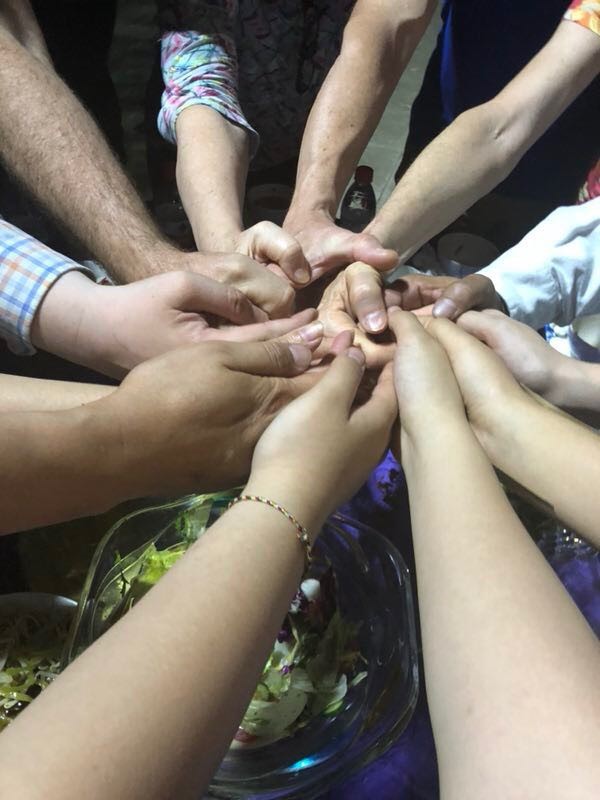 外国语学院外籍专家延安访问团成员们不同肤色的手手相扣,祝福中西文化永远和谐