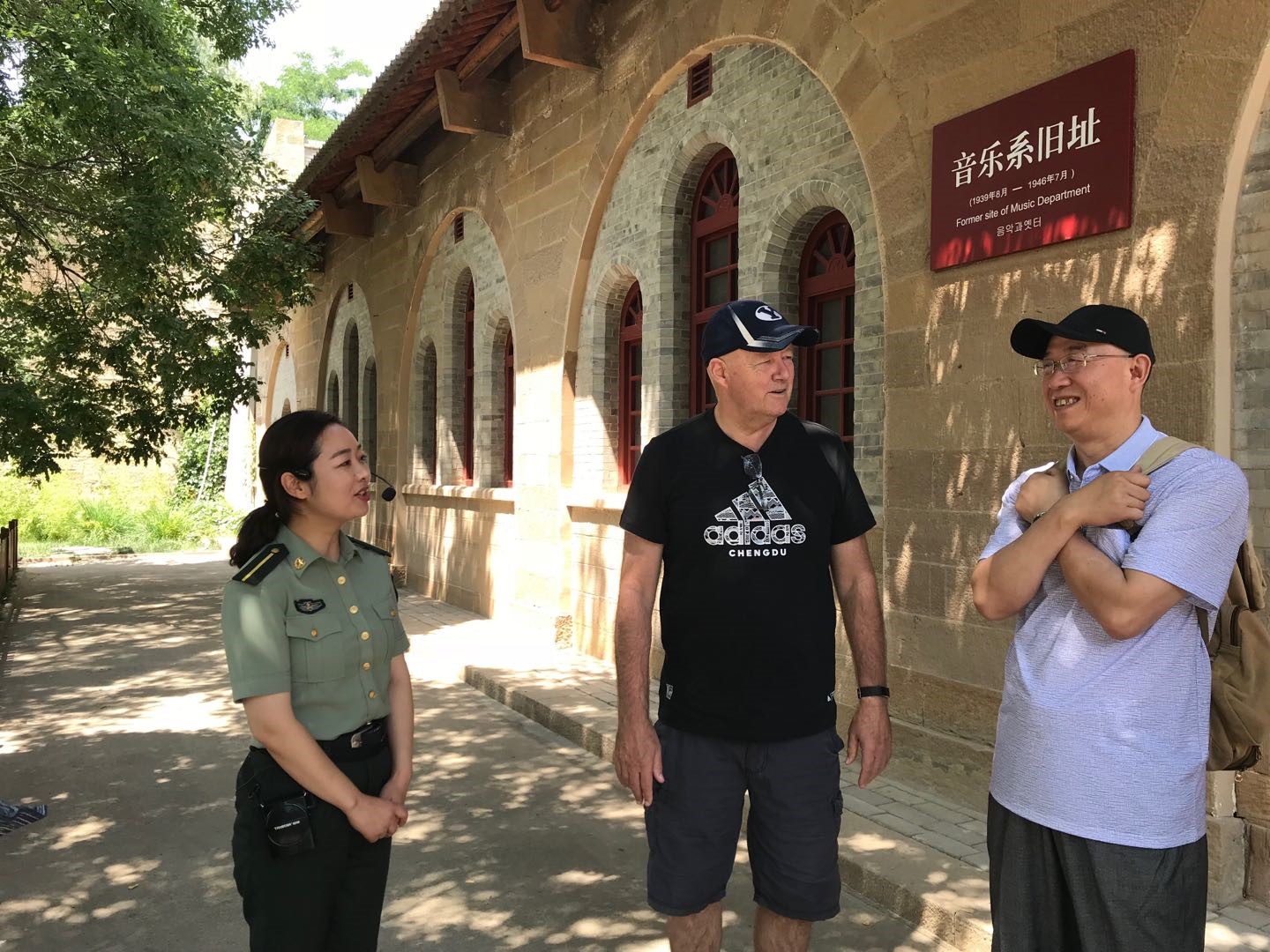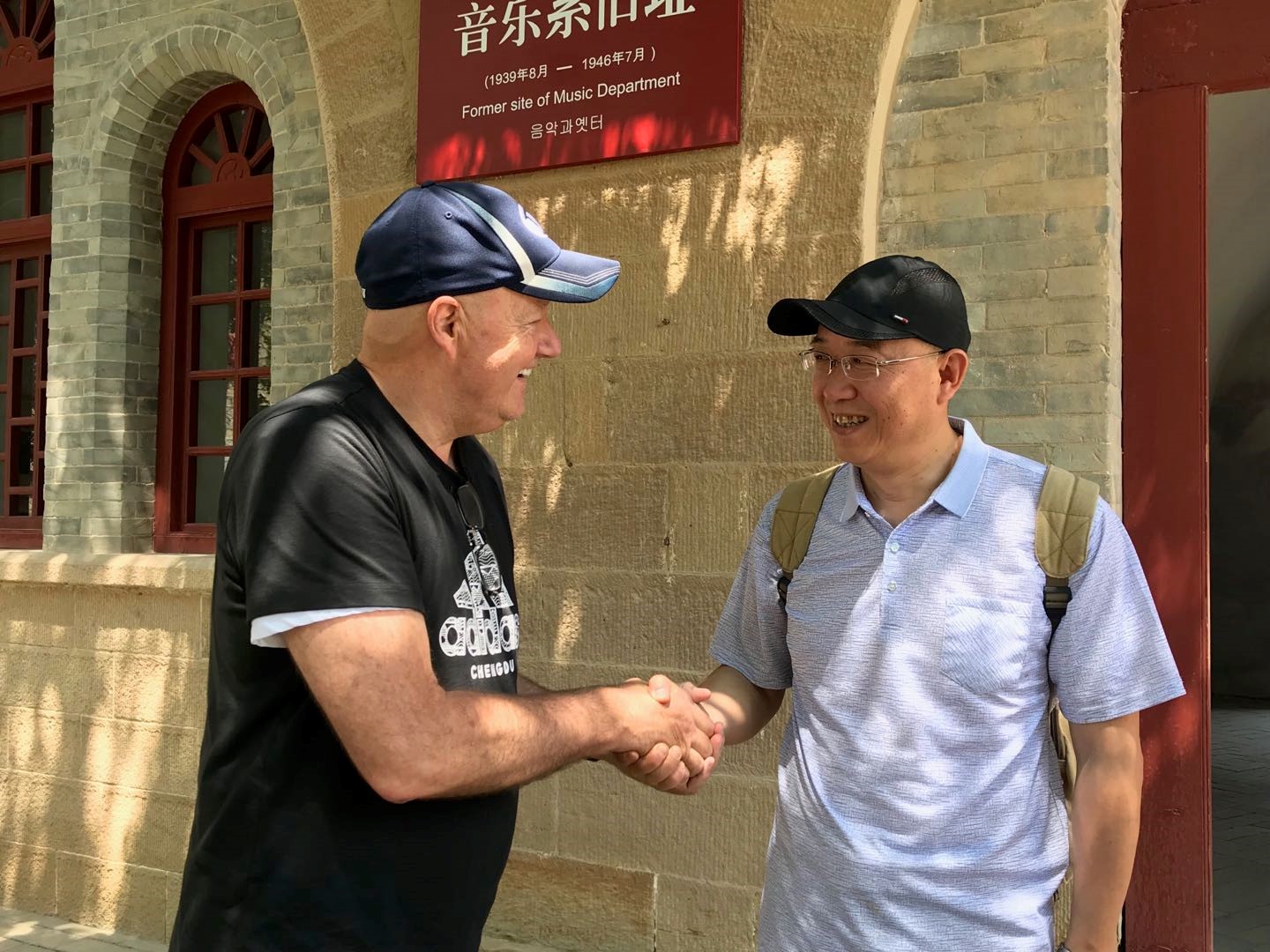 鲁迅艺术学院音乐系旧址前王军书记与外籍专家Ken畅聊今日中国音乐成就