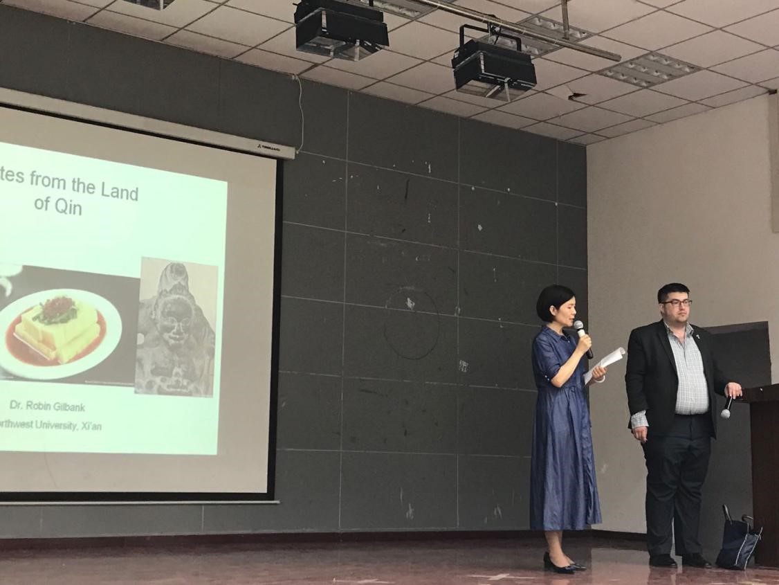 Robin Gilbank博士的讲座《一个英国人眼中的陕西》从他个人在西安十年的工作和学习出发,畅谈他对中英文化差异的思考。罗宾博士在讲座现场朗读了他的专著《罗宾博士看陕西》中的精彩片段,苏蕊老师做了交替传译。罗宾博士对很多中国文化现象的独到见解以及该书译者胡宗锋教授的精彩演绎赢得了听众们的阵阵掌声。