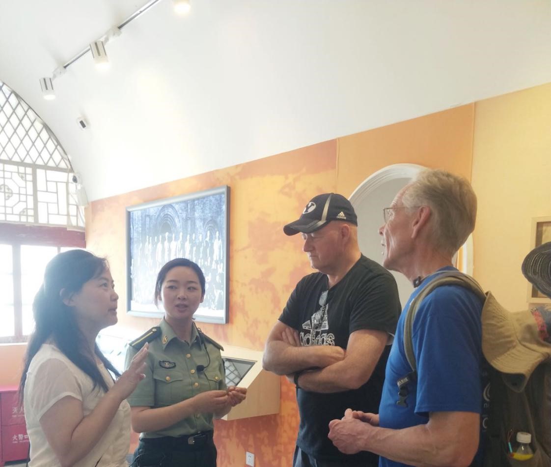 王军书记与Ken及鲁艺讲解员交流当年开设鲁艺的历史背景