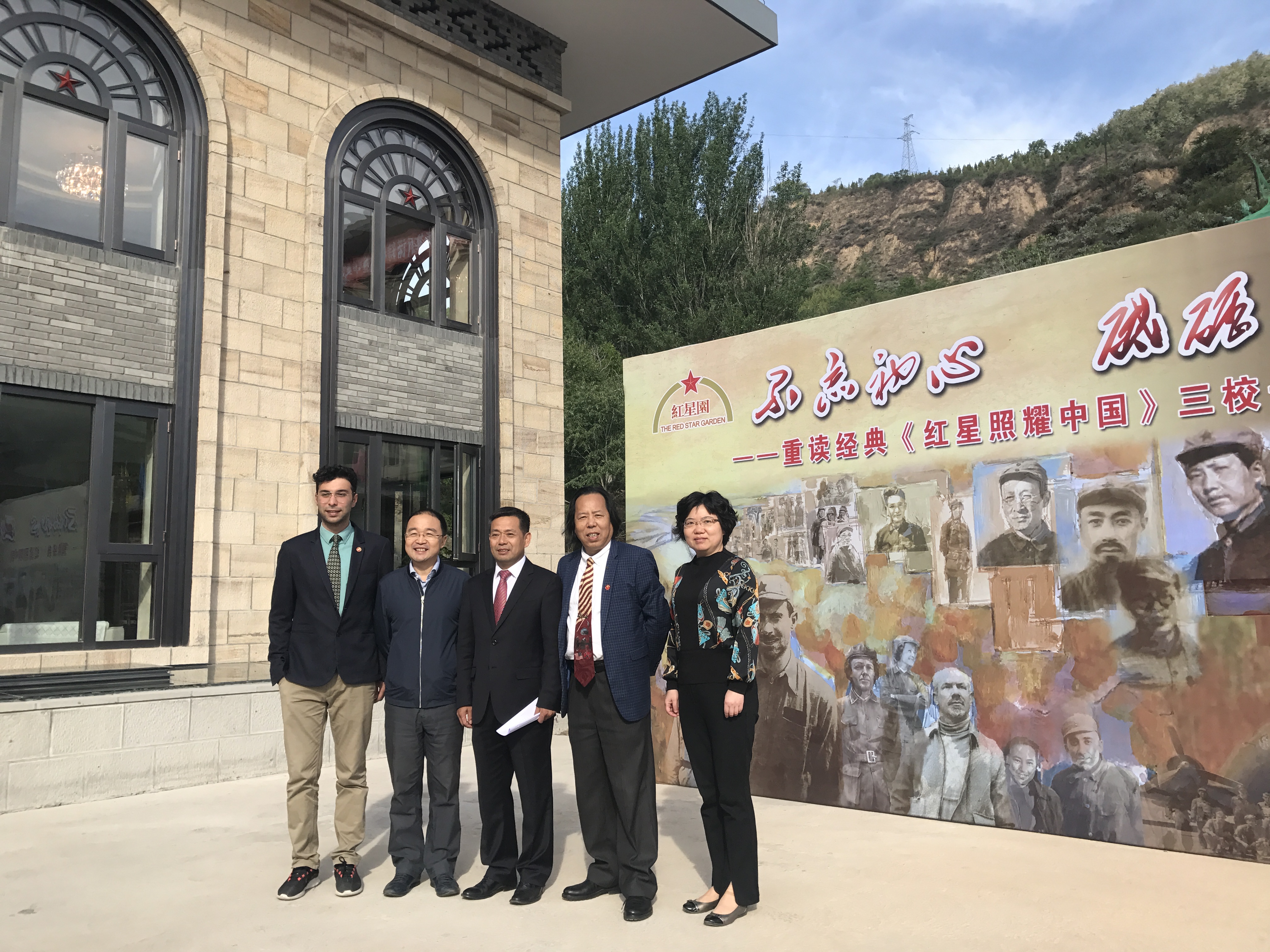 “三校一园”首次研讨会于2019年1月22日在延安大学召开。北京大学的中国埃德加·斯诺研究中心、西北大学的陕西省斯诺研究中心、延安大学的斯诺研究中心三所大学和延安红星园共建合作平台,推进以两个斯诺研究为核心的学术研讨、教育培训研学、中外跨文化交流活动。2018年7月下旬,我院英语系学生暑期三下乡社会实践小分队曾到红星园参观采访,被园内的国际友人事迹窑洞展览所震撼,拍摄完成了纪录片。