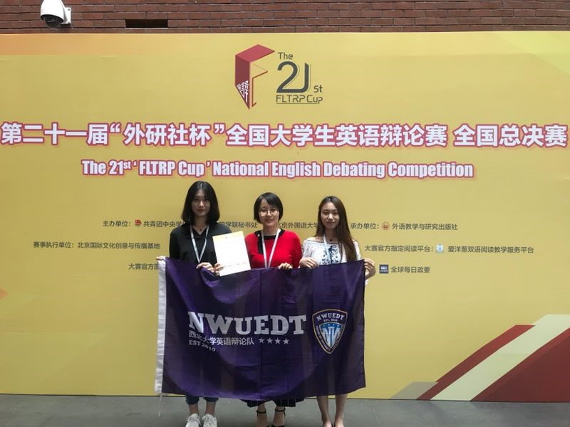 “外研社杯”全国英语辩论赛(FLTRP Cup National English Debating Competition)由共青团中央、全国学联及北京外国语大学联合主办,外语教学与研究出版社承办,是目前国内水平最高、规模最大的英语口语赛事。本次全国总决赛规模大,竞争激烈,共有来自北京、上海、广东、四川、香港、澳门等30多个省、自治区和直辖市的120支代表队参加了比赛。祝贺我院师生再获殊荣!