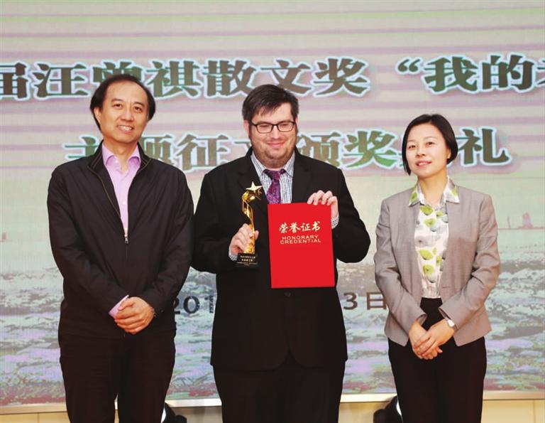 2018年5月13日,第二届汪曾祺散文奖“我的老师”主题征文颁奖典礼在高邮市汪曾祺学校举行。全国港澳研究会创会会长、国务院港澳事务办公室原常务副主任陈佐洱,中国作协副主席、著名作家贾平凹,汪曾祺之子、经济日报社原国际部主任、作家汪朗,江苏省作协主席范小青出席颁奖典礼。我院院长助理罗宾博士获外国散文奖。