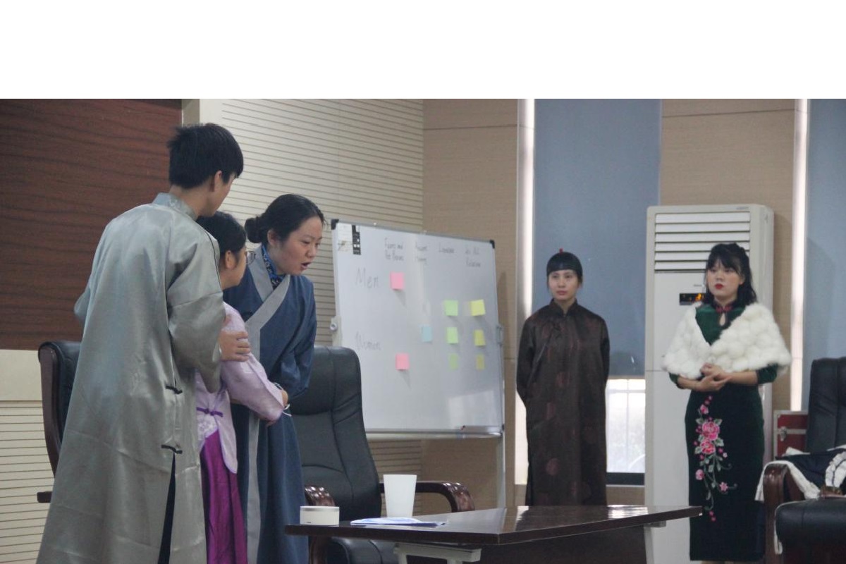 英语系的“英语小剧场”是外国语学院英语专业实施的以“课堂教学为体,多元课堂为辅”的“一体多元”文学类课程教学模式的实验教学成果之一。该模式在坚持文学文本化的同时,为2017级学生开设了Movie Night英美文学名著名片鉴赏课,实现文学作品的影视化;通过“英语小剧场”实现文学作品的剧场化,以期通过多维文学教学,不断打磨学生的语言基本功,进一步提高学生的文学素养。