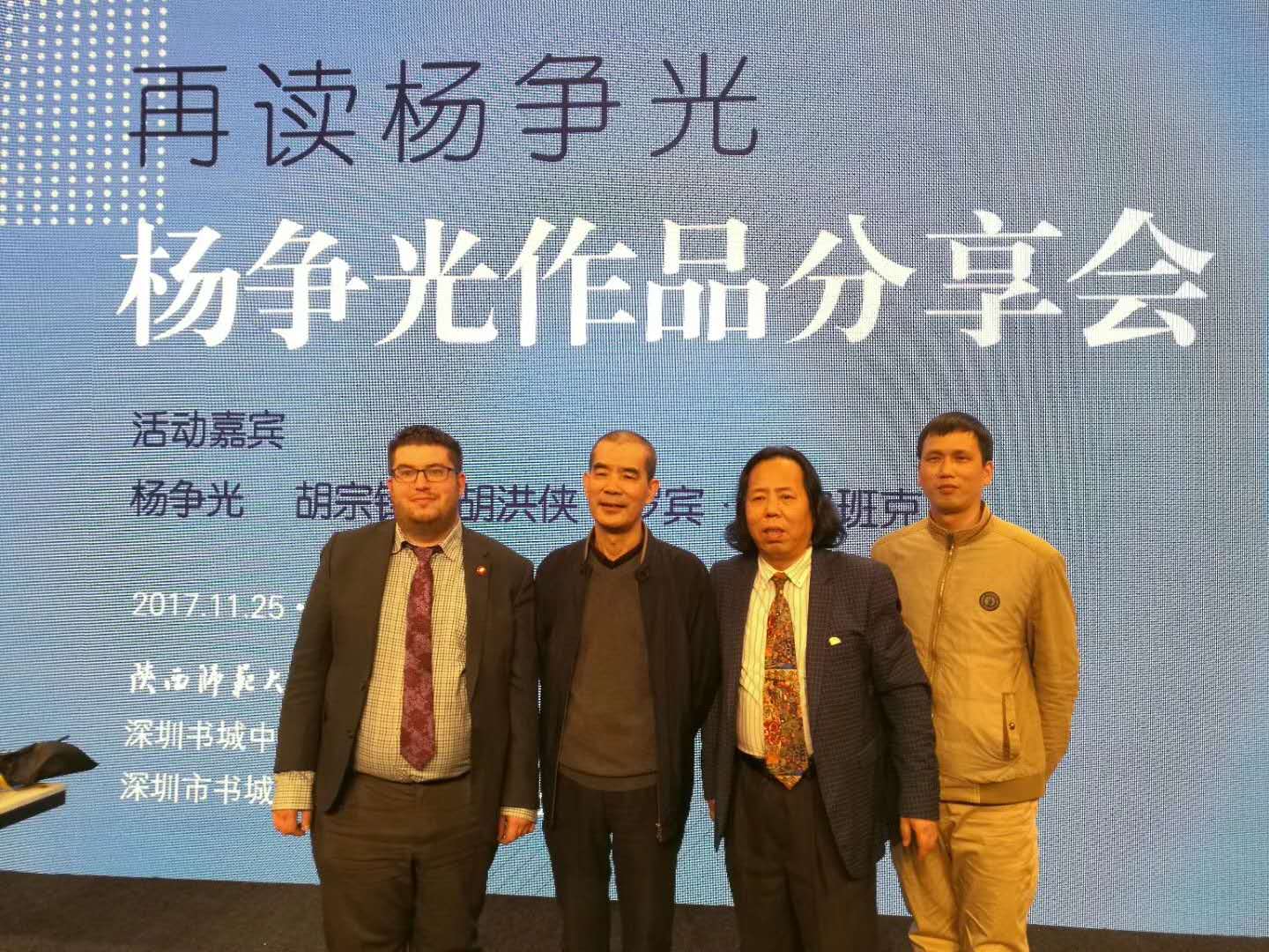2017年11月25日,“再读杨争光——杨争光作品分享会”在深圳书城举行。我院胡宗锋教授、外籍专家罗宾·吉尔班克等人翻译的杨争光中短篇小说集《How Old Dan Became a Tree》(《老旦是一棵树》)已由英国峡谷出版社出版,并作为分享会作品之一全球首发。译作《老旦是一棵树》收录了作家杨争光中短篇小说《蓝鱼儿》《老旦是一棵树》《高潮》《公羊串门》《从沙坪镇到顶天峁》《干沟》《驴队来到奉先畤》《买媳妇》《盖佬》《高坎的儿子》《黑风景》共计11篇。这是杨争光的小说作品第一次被翻译成英文并出版。