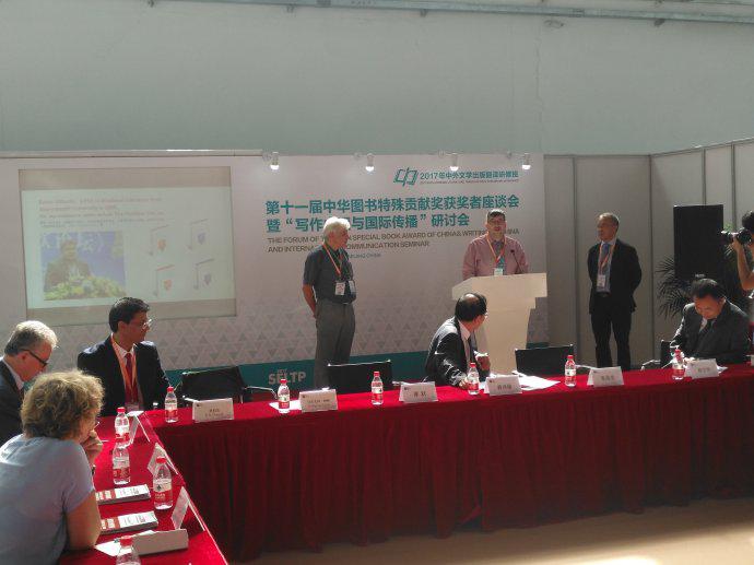 8月23日,第二十四届北京国际图书博览会(英文简称BIBF,以下简称图博会)和第十五届北京国际图书节(以下简称图书节)在中国国际展览中心新馆开幕。在由中华人民共和国文化部主办的“外国人写中国第一期成果发布暨出版签约仪式”上,(英)罗宾·吉尔班克(Robin Gilbank)著、西北大学外语学院院长、教授胡宗锋译的两部四本作品《探究中国》和《罗宾博士看陕西》的中、英文版作为中国出版集团、中译出版社“外国人写作中国计划”丛书在书展发布。
