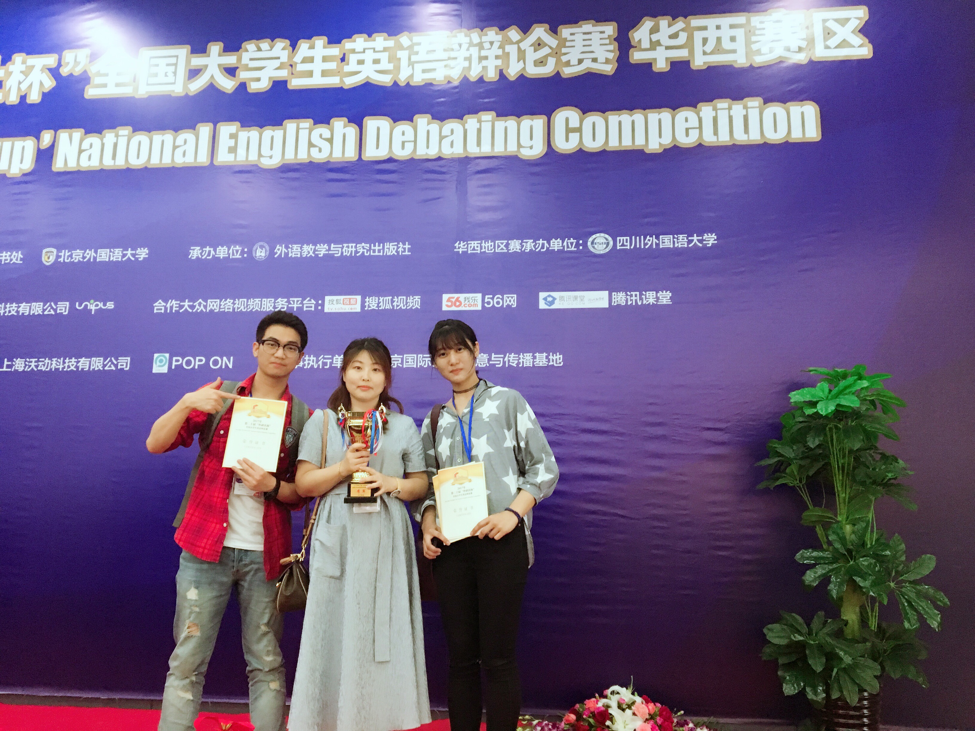 第20届“外研社杯”全国英语辩论赛华西赛区复赛于4月28日在重庆市四川外国语学院举办,本次华西赛区云集了来自重庆、四川、山西、陕西、河南、新疆、甘肃、宁夏、西藏、青海、内蒙古等各省市的400多名参赛选手。在经过为期2天5轮激烈的循环赛后,我校外国语学院英语专业2014级和2015级的学生赵子喆、牟昶璇,在本院马莉老师的带队下,以总积分排名第一的优异成绩中从107支学校参赛队伍中脱颖而出,率先晋级全国总决赛,并夺得了华西赛区季军,创下了我校选手参加“外研社杯”全国英语辩论赛地区复赛的最好成绩。5月18日-5月25日,他们还将代表西北大学参加本届大赛全国赛的角逐。