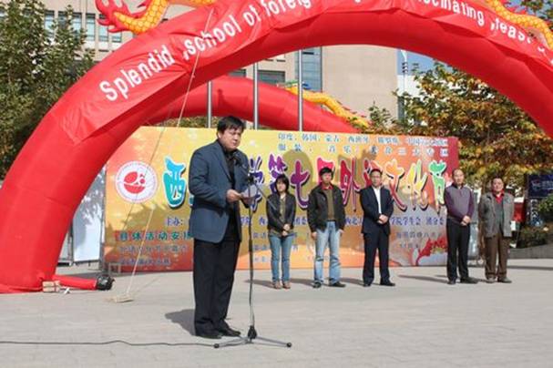 学生工作部部长田兵权首先致开幕词中。他指出,校园学生活动是校园文化建设的重要组成部分,是学生素质教育的重要阵地,也是展示大学生精神文明建设成果的重要窗口。外语文化节依托外语学科的特点,满足了我校学生日益增长的精神文化需求,提升了广大学生的文化修养和文化品位。外国语学院已成功举办了六届外语文化节,规模一届比一届大,档次一届比一届高,效果一届比一届好,它已成为我校师生每年翘首以待的外语文化盛事。他真诚希望,外国语学院的师生在今后能积极探索,不断创新,在提升大学生文化素养和文化品味方面取得新的成绩。