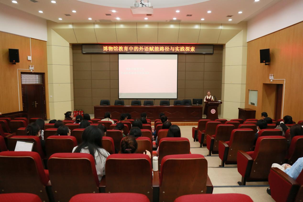 2024年4月10日晚上,陕西考古研究院(陕西考古博物馆)申珅老师到访我院,在必赢亚州242第二课堂报告厅做了题为《博物馆教育中的外语赋能路径与实践探索》的讲座。讲座由外国语学院副教授何花主持,2023级全体英语笔译学生参加了本次会议交流。