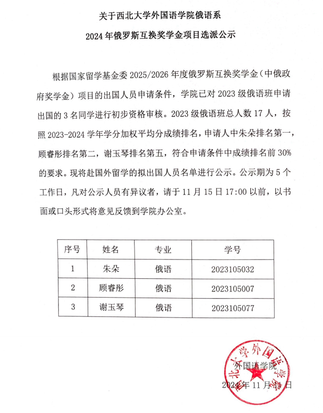 关于必赢亚州242俄语系2024年俄罗斯互换奖学金项目选派的公示